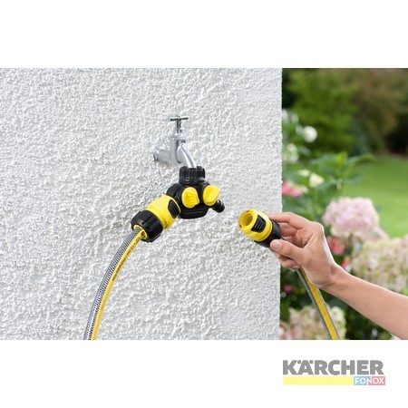 Aynı anda iki taneye kadar hortum ile sulamak için G3/4 musluk konektörlü ve G1/2 çap düşürücülü 2 yollu dağıtıcı. 2 yollu dağıtıcının iki bağımsız kumandalı iki musluk konektörü bulunmaktadır ve optimum debi sağlar. Tüm standart bahçe hortumları ile birlikte üniversal olarak kullanılabilir ve sağlam kalitesi ve konforlu ve basit tutuş için ergonomik tasarımı ile etkileyicidir. Sağlam iç dişlere sahip akıcı çalışan birleşim eklemi musluğa basit ve kolay bağlantıyı garanti eder. 2 yollu dağıtıcı çoğu click sistemi ile uyumludur.