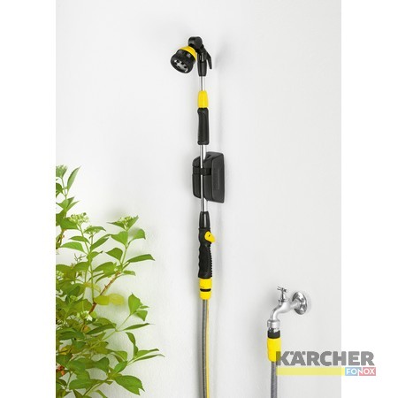 Püskürtme boruları, bir bahçe duşu olarak ideal bir şekilde kullanılabilecek olan kompakt duvar braketine mükemmel bir şekilde takılabilir. Duvar braketi, püskürtme borularının iç duvarlar üzerinde temizlenmesi ve emniyetli bir şekilde saklanması için de idealdir. Borular için duvar braketinin çapı:16 – 20 mm. Dübeller ve vidalar birlikte verilmektedir.