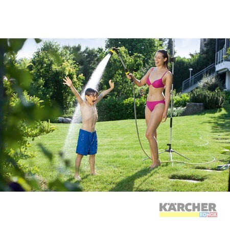 2'si 1 arada bahçe çözümü! Çok stabil, yüksekliği ayarlanabilir (1,50 - 2,20 m) bahçe duşu, sıcak yaz günlerinde ferahlatıcı bir duş almak için 3 dakikada kurulabilir. Sökülebilir duş borusu ile aynen alışılagelmiş bir banyo duşunda olduğu gibi, rahatlatıcı bir duşun tadını çıkarabilirsiniz. Kendinizi bir bahçe hortumu ile serinletmeniz ile karşılaştırıldığında, ince duş jeti önemli ölçüde daha az su tüketimine sahiptir. Bitkilerin verimli bir şekilde sulanması için, duş borusu tam donanımlı bir püskürtme borusu olarak da kullanılabilir. Duş hızlı ve kolay bir şekilde sökülebilir ve kış aylarında çok dar bir alana saklanabilir. Bu şekilde, gelecek yaza kadar hiçbir şeyin kaybolmayacağından emin olursunuz. Diğer detaylar: optimum düzeyde stabilite için tripod ve sivri uçlu çubuk, su debisinin ayarı tek elle yapılabilir.