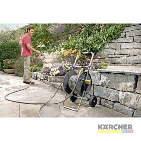 Taşınabilir araba! Tabanca, sprey vb. için aksesuar deposu ve kısa hortum için depolama kancası bulunan yeni, tam montajlı HT 80 M kit hortum arabası oldukça kullanışlı ve pratiktir. Uzun hortumu artık bahçe boyunca çekmeye gerek yok. Çünkü manevra kabiliyeti olan araba her zaman sulama için kullanıcının yanı başındadır. Uzun hortum su musluğuna takılır, yere açılır ve orada kalır. Bu şekilde yataklar, çalılar, mobilyalar ve hortum sağlam kalır. Ardından sulama kısa hortum kullanılarak arabanın etrafında kolaylıkla gerçekleştirilir. Bahçe bakımının önünde hiç bir şey duramaz! Dahası, HT 80 M kit kolaylıkla depolanır ve yenilikçi katlanma fonksiyonu sayesinde fazla yer kaplamaz.