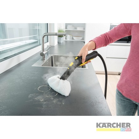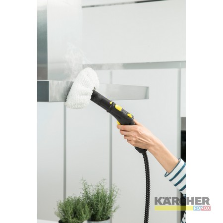 Yeni kompakt ve hafif SC 2 Deluxe EasyFix Premium buharlı temizlik makinesi, buhar yoğunluğunu, kir seviyesine göre ayarlamak için, iki kademeli buhar kontrolü sağlamaktadır. Tutma yerindeki yenilikçi LED sistemi sayesinde çalışma modunu her zaman görüntüleyebilirsiniz. Kırmızı, cihazın hala ısındığını, yeşil ise SC buharlı temizleyicinin çalışmaya hazır olduğunu gösterir. Aksesuarlar (iki uzatması dahil) tamamen ekstra temin edilen uzun bir aksesuar torbasında saklanabilir veya alternatif olarak cihazın üzerine yerleştirilebilir. Esnek mafsallı EasyFix zemin başlığı mükemmel ergonomiyi garanti eder ve lamella teknolojisi sayesinde mükemmel temizlik sonuçları sağlar. Kullanışlı kanca ve halka sistemi sayesinde mikrofiber zemin bezi, zemin nozuluna hızlı ve kolay bir şekilde tutturulabilir ve kire temas etmeden tekrar çıkarılabilir. Çeşitli aksesuarlar yardımı ile istendiği gibi kullanıldığında fayans, ocak, davlumbaz ve hatta en küçük boşluklar hijyenik olarak temizlenir. İnatçı kirlerden bile kolayca kurtulunur.
